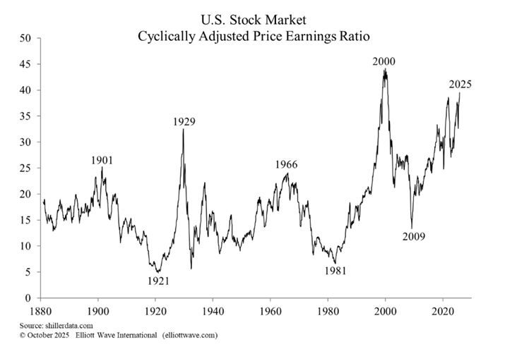 Of course, there’s no reason why earnings can’t explode higher rather than share prices decline in order for CAPE to fall back. AI bulls think that way. But if history is a guide, this overvaluation of the U.S. stock market will be corrected by a grizzly bear market in stocks.